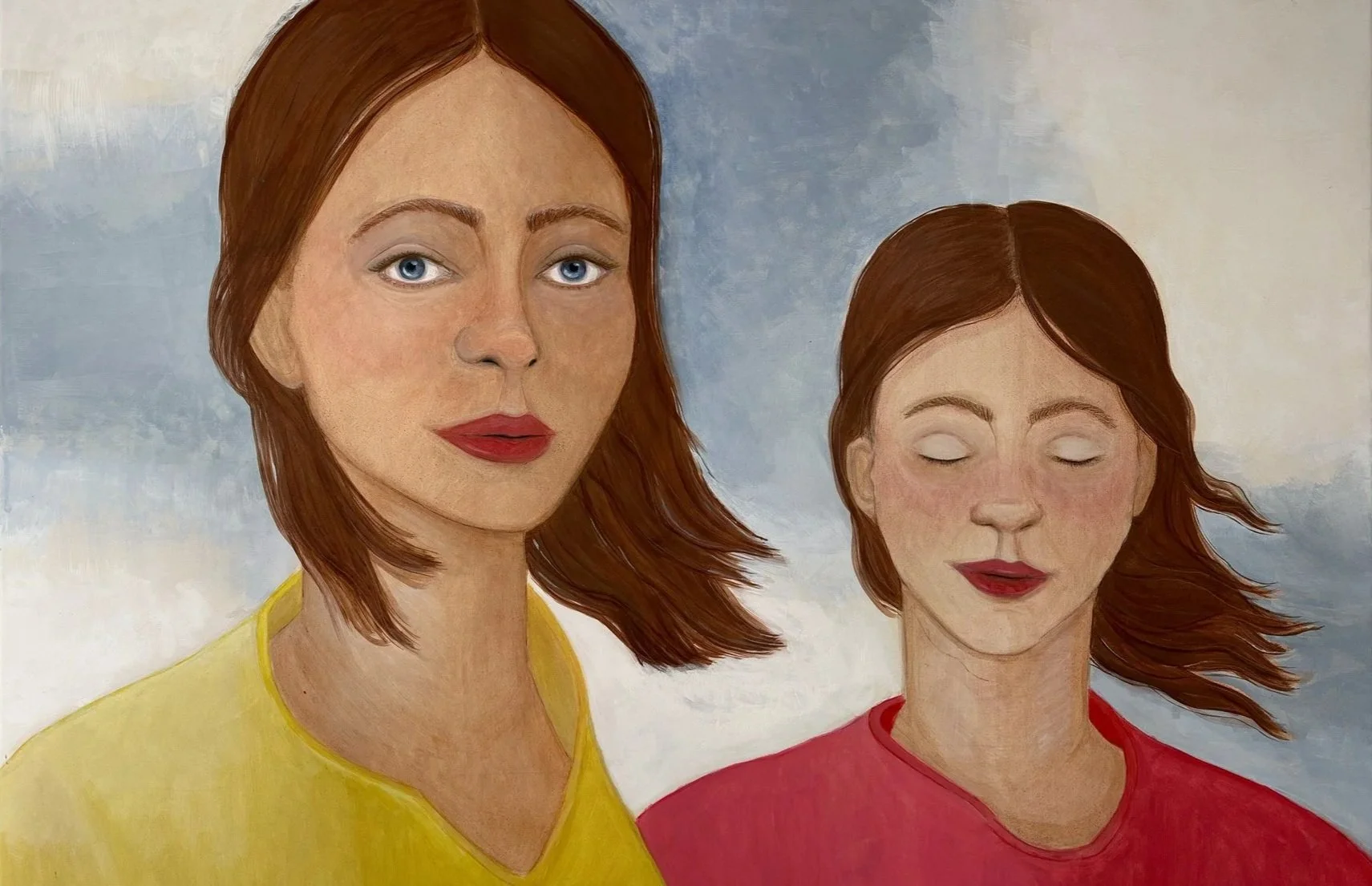 These works on canvas explores the profound relationship and the invisible threads that connect women.